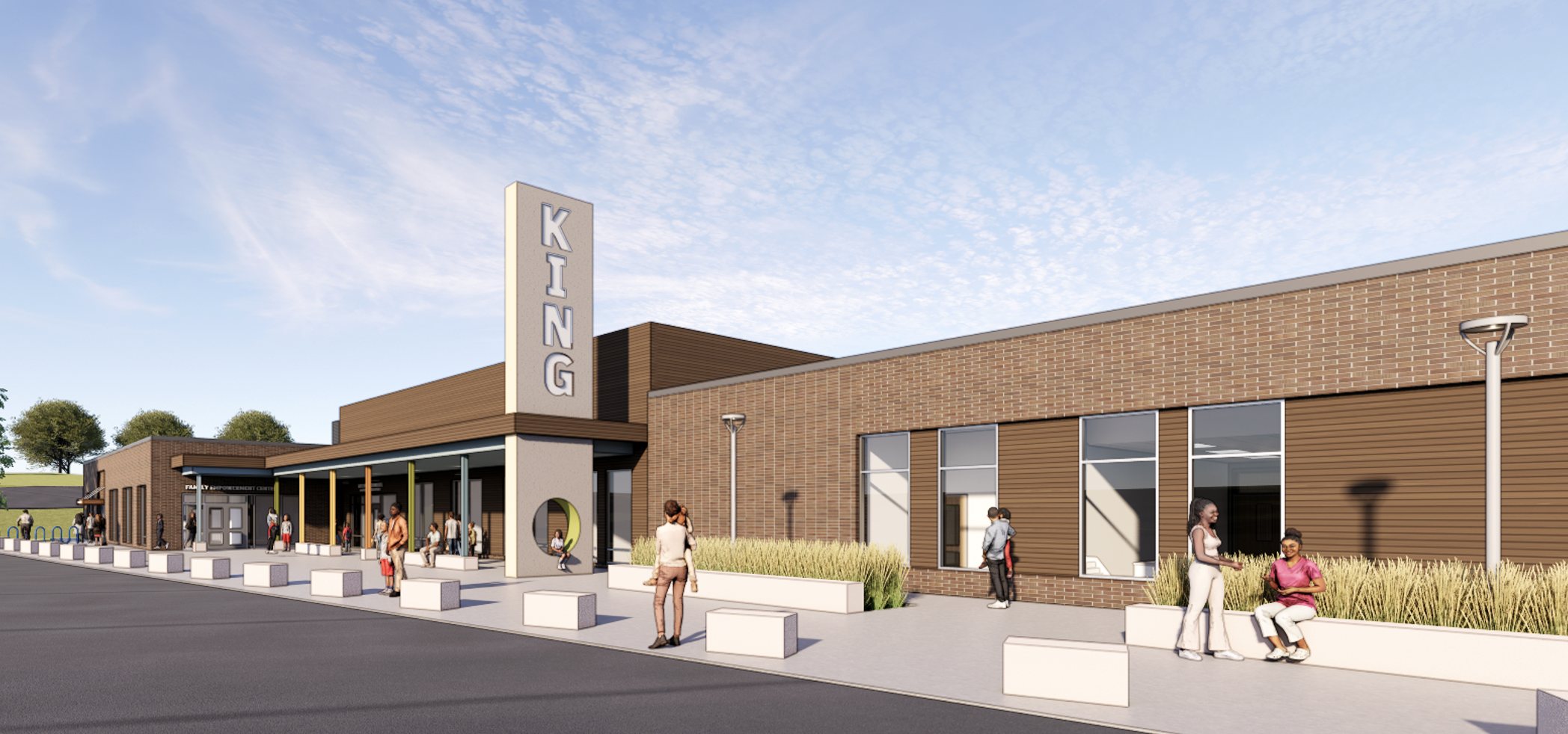 The King Empowerment Center is one of three buildings that make up the King Empowerment Campus. When complete, the building will serve as a Family Empowerment Center, providing modern, inspiring spaces that support learning and family resources. The broader campus will also include a new elementary school and a new early childhood center. The campus represents KCPS’ first new construction in more than 30 years and will be completed in 2027.