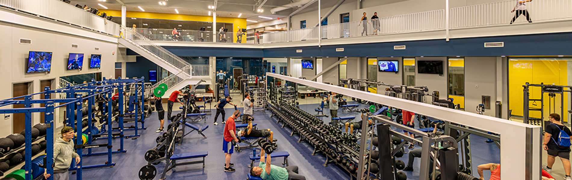 · Fitness Floor, Cardio Bridge, Gym with Two Full-Size Basketball & Volleyball Courts, an Outdoor Fitness Space & Indoor Elevated Track